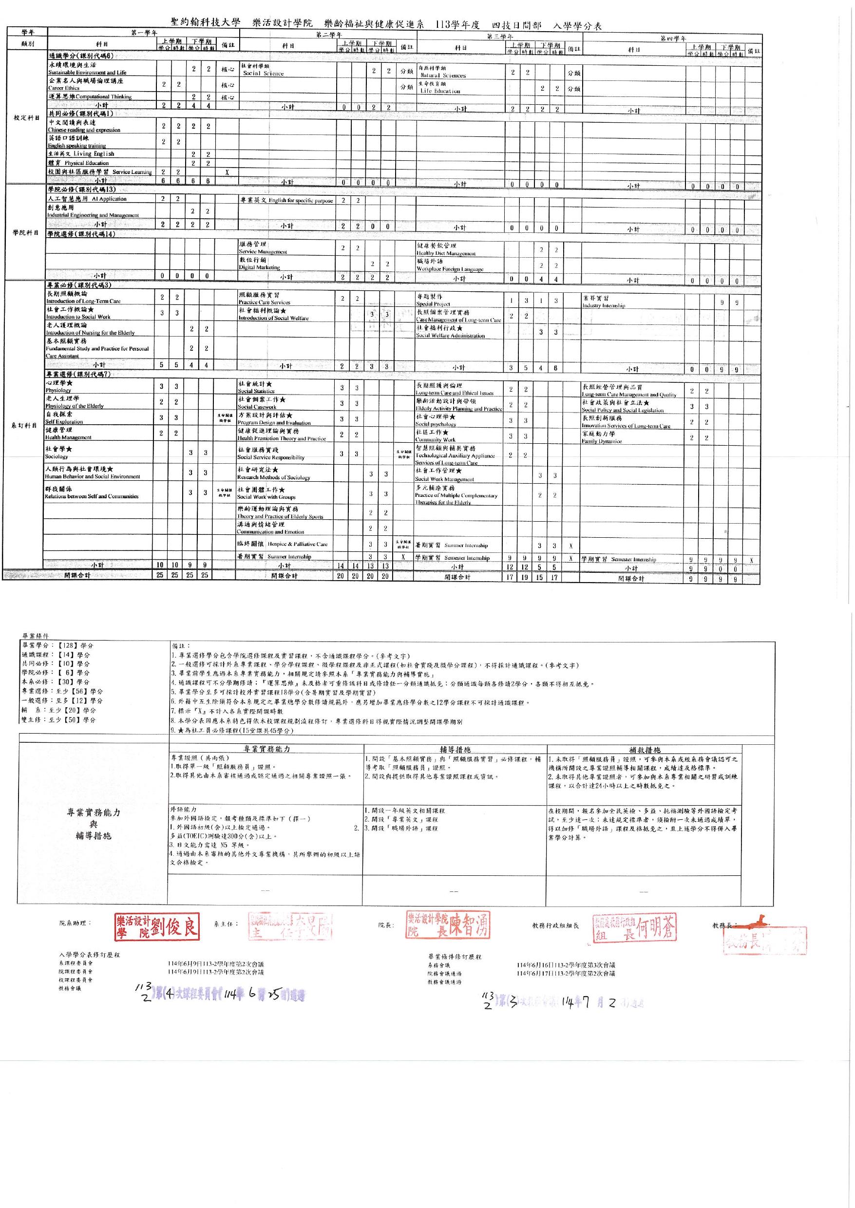 113學年度樂齡系入學學分表